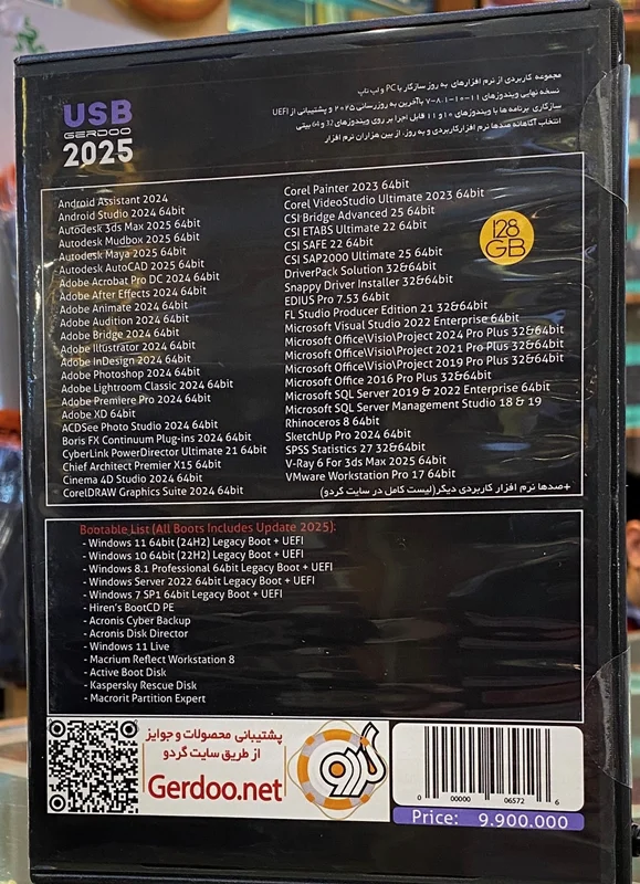 عرضه شده برروی یک فلش 128 گیگابایتی با کیفیت که علاوه بر تضمین دوام ، حمل و نقل آسان تر را نیز به همراه دارد.